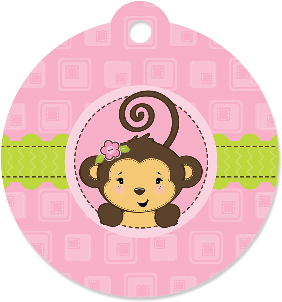 Pink Monkey Girl - Baby Shower or Birthday Party Favor Gift Tags (Set of 20)