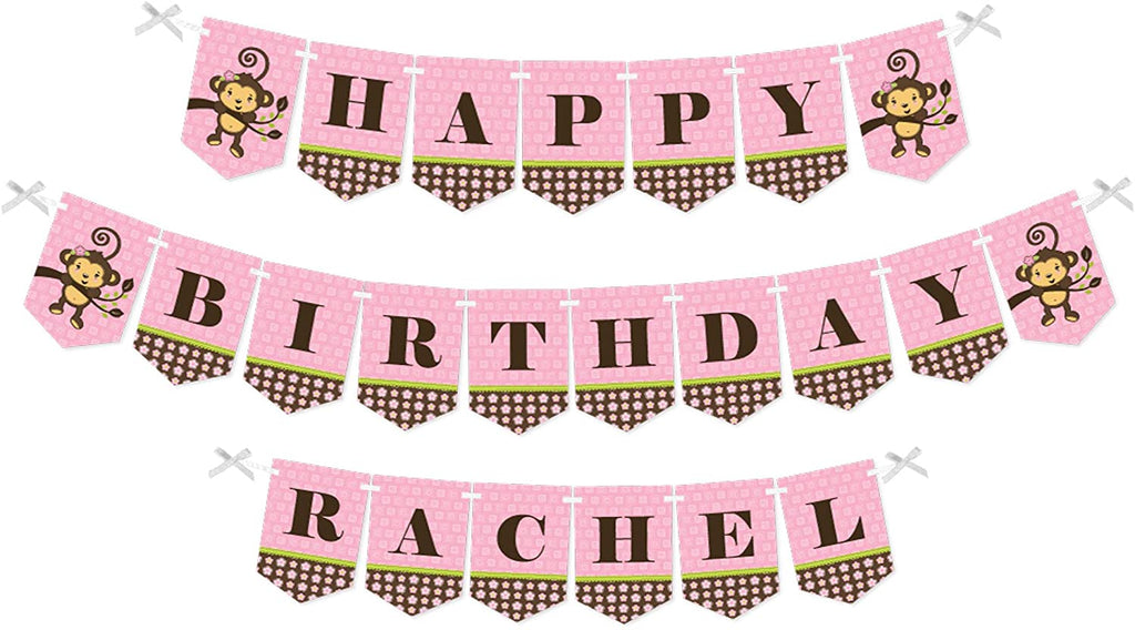 Custom Pink Monkey Girl - Personalized Girl Birthday Party Bunting Banner & Decorations - Happy Birthday Custom Name Banner
