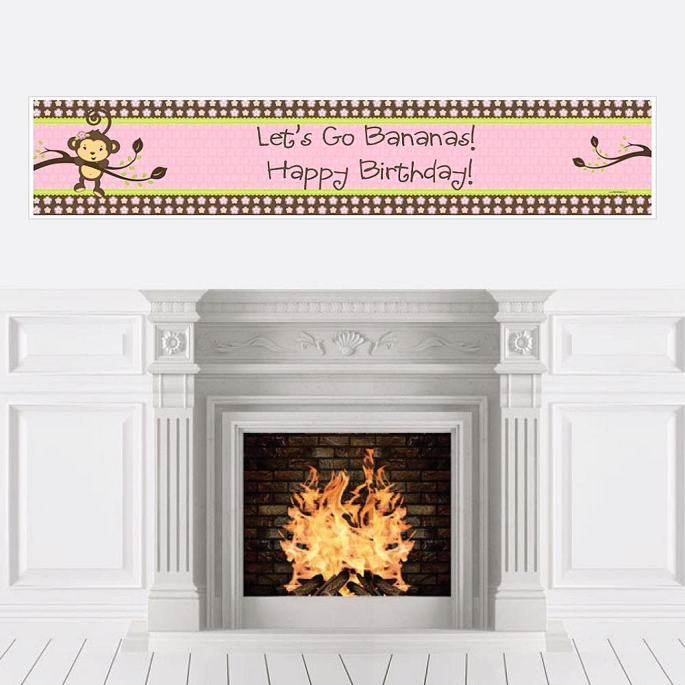 Pink Monkey Girl - Happy Birthday Decorations Party Banner