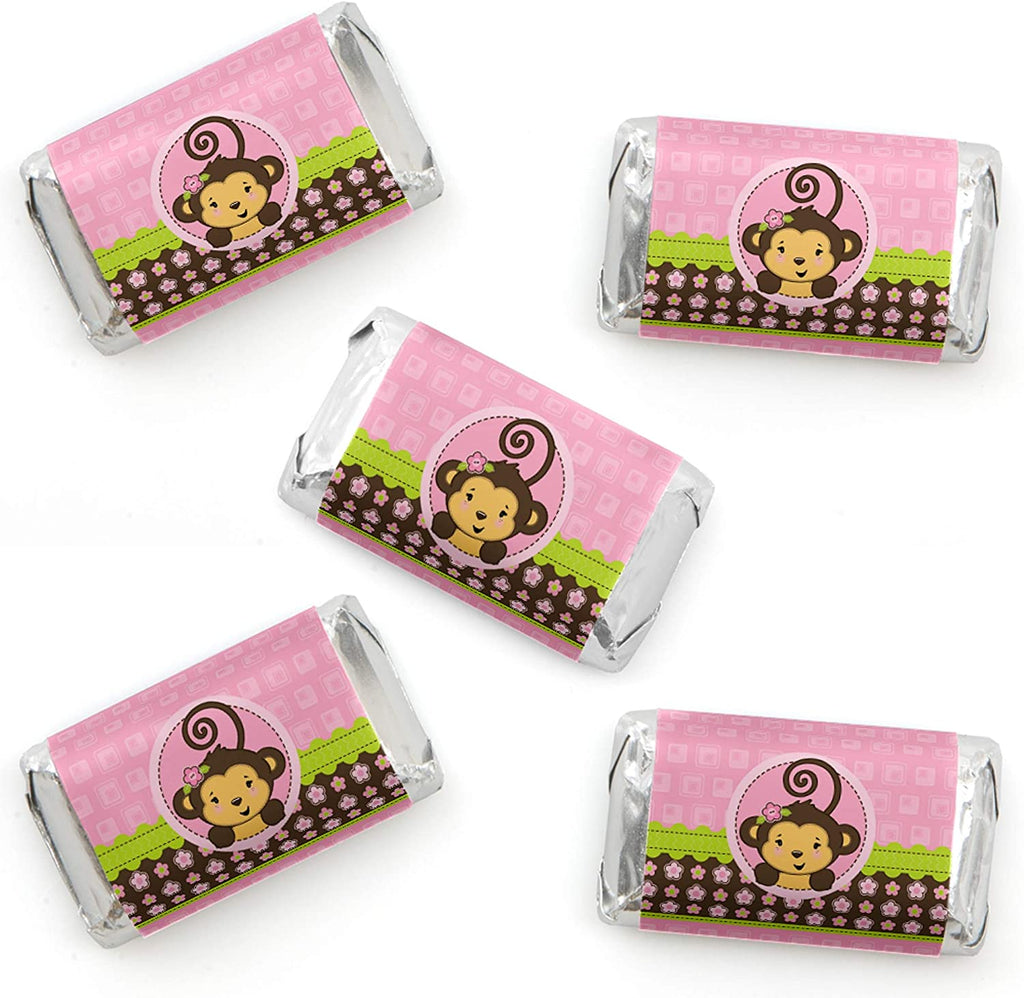 Pink Monkey Girl - Mini Candy Bar Wrapper Stickers - Baby Shower or Birthday Party Small Favors - 40 Count