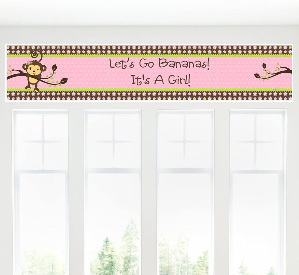 Pink Monkey Girl - Baby Shower Decorations Party Banner