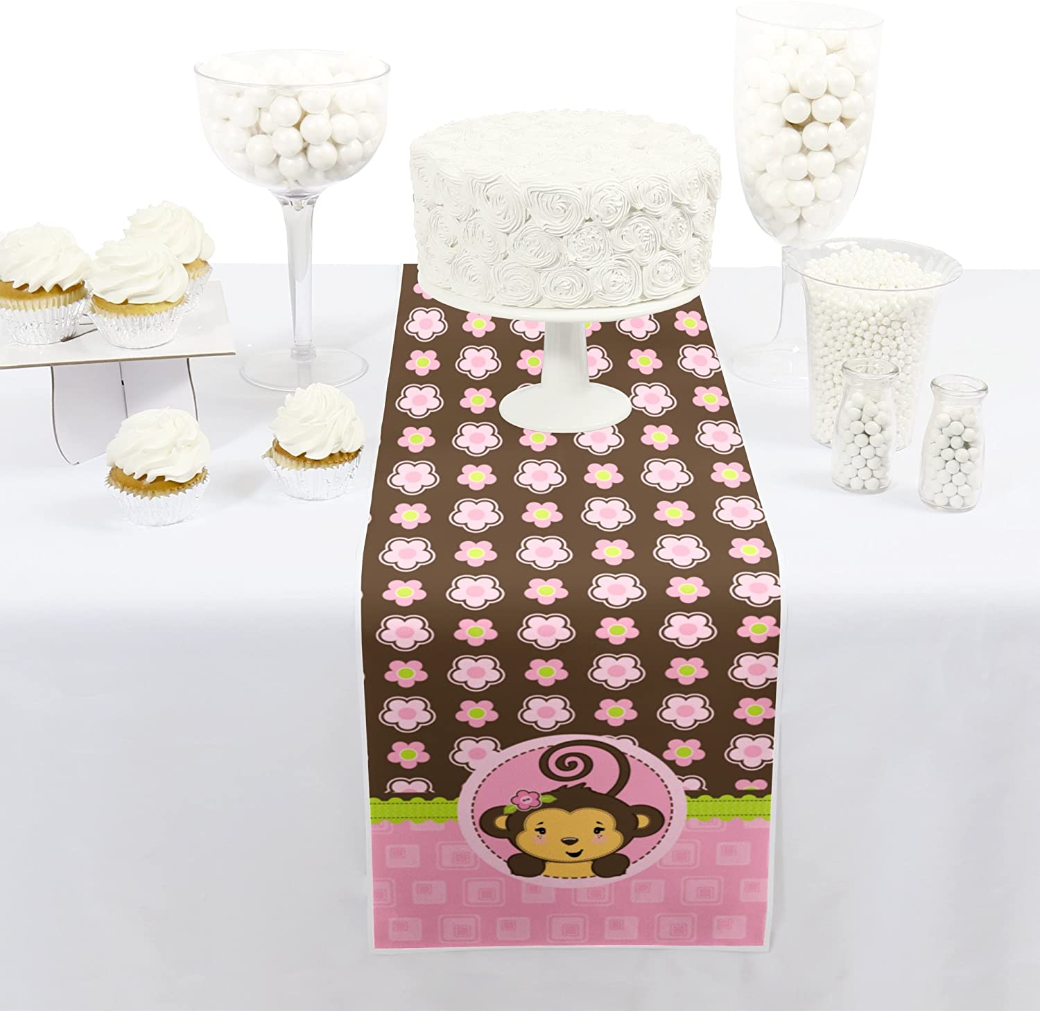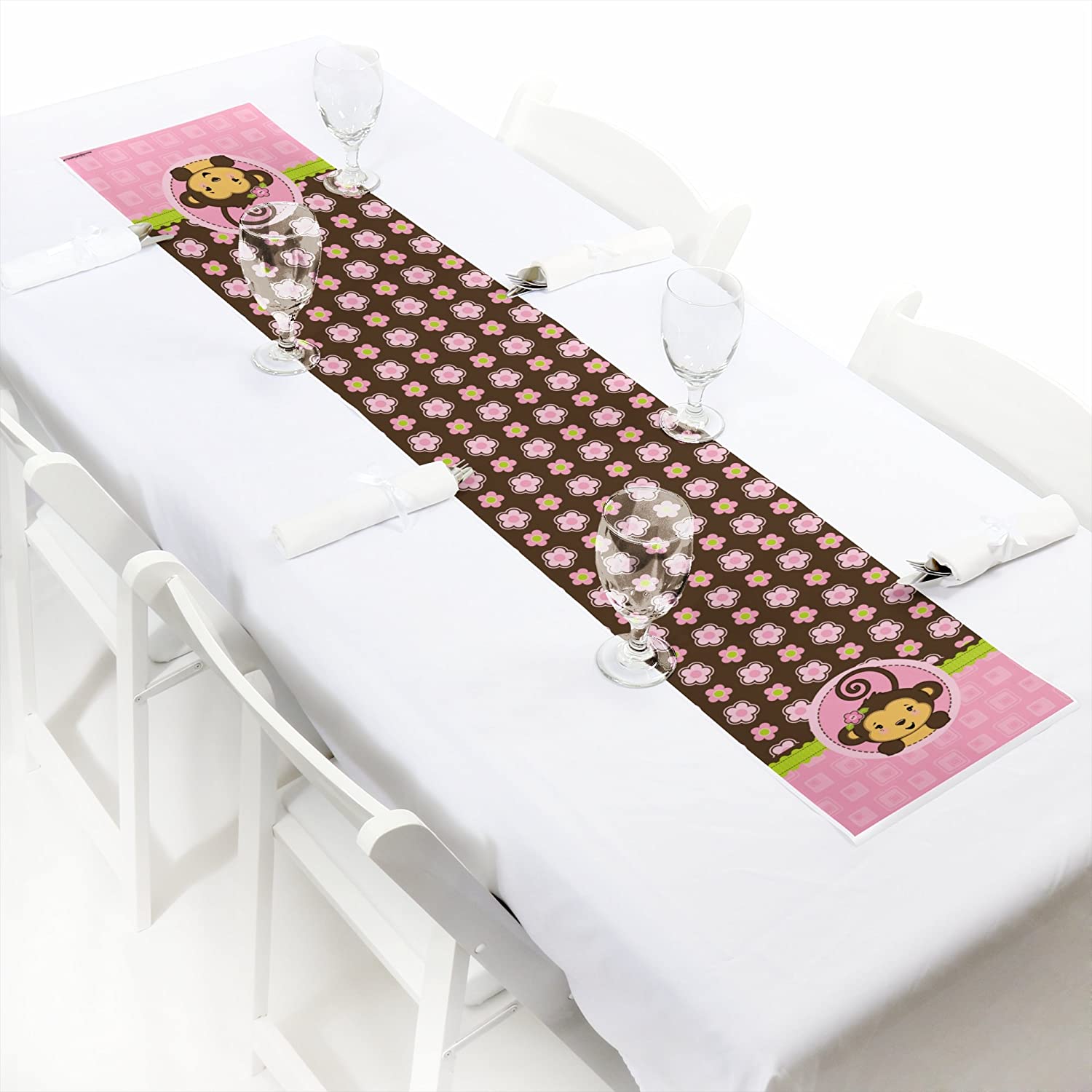 • SIZE: Monkey Girl baby shower or birthday party petite table runner measures 1 foot by 5 feet.