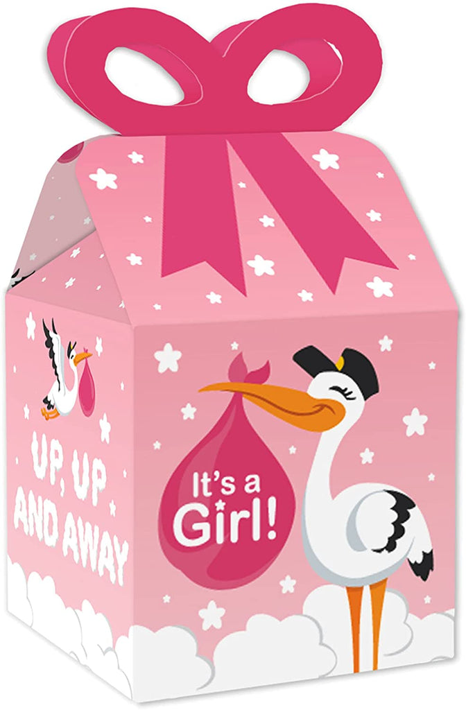 Girl Special Delivery - Square Favor Gift Boxes - It’s A Girl Stork Baby Shower Bow Boxes - Set of 12