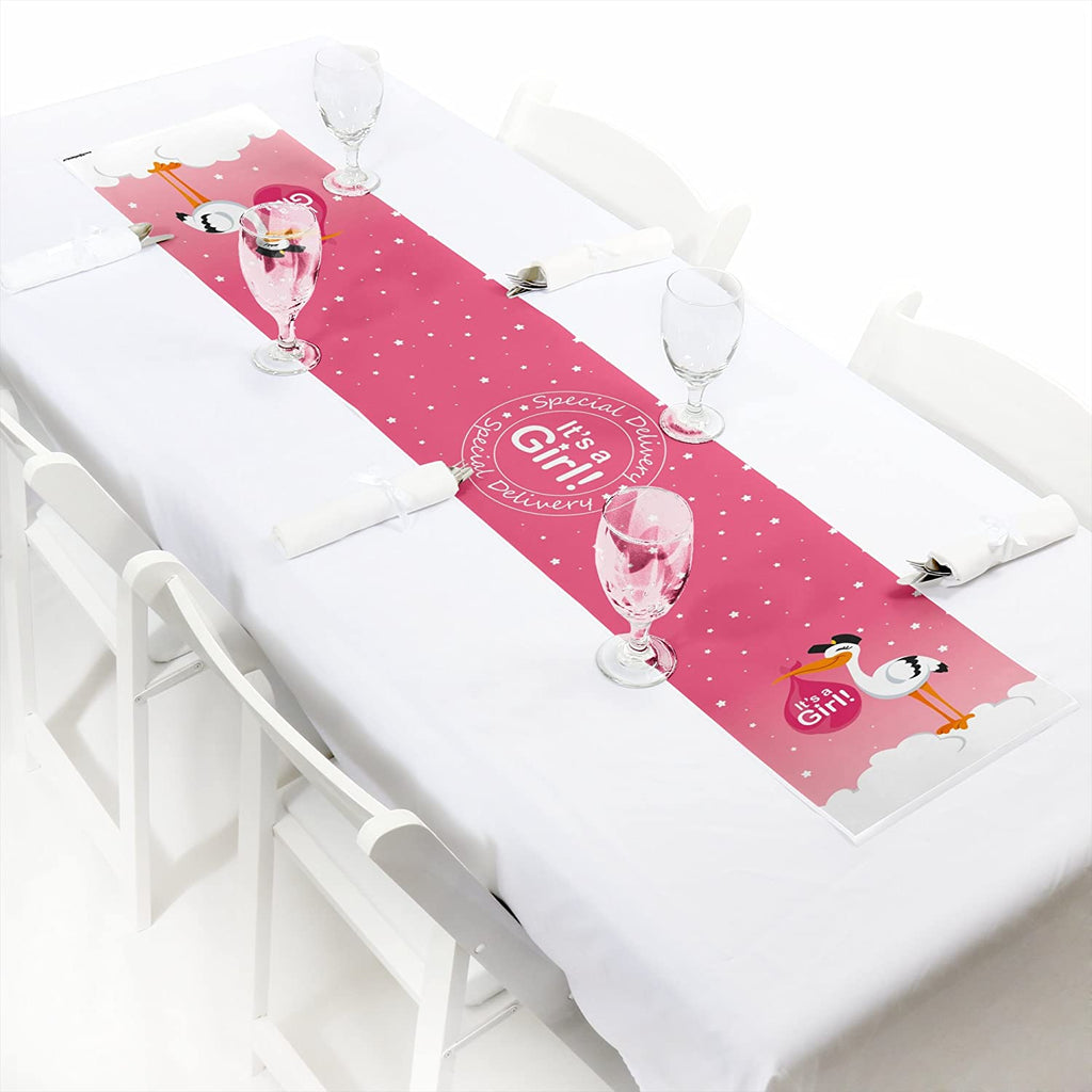 Girl Special Delivery - Petite Pink It's A Girl Stork Baby Shower Paper Table Runner - 12 x 60 inches