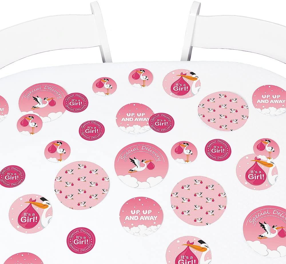 Girl Special Delivery - Pink It's A Girl Stork Baby Shower Giant Circle Confetti - Party Decorations - Large Confetti 27 Count