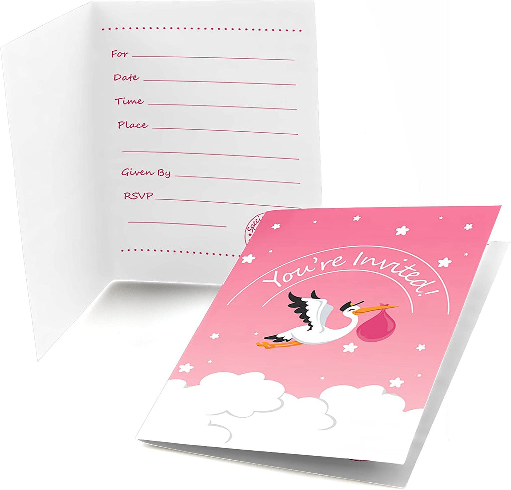 Girl Special Delivery - Fill In Pink It's A Girl Stork Baby Shower Invitations (8 count)