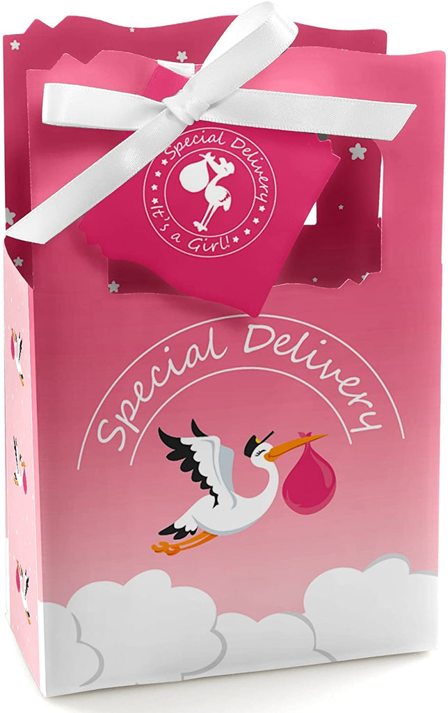 Girl Special Delivery - Pink It's A Girl Stork Baby Shower Favor Boxes - Set of 12