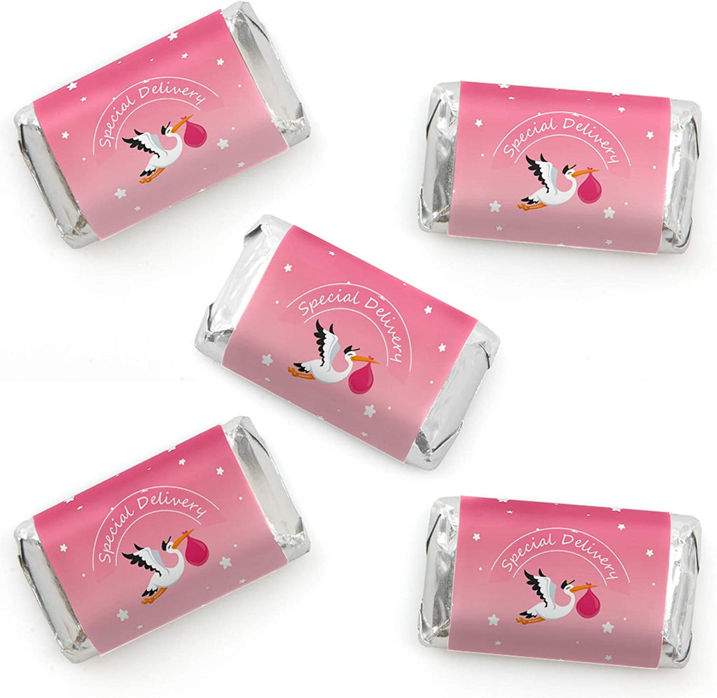 Girl Special Delivery - Mini Candy Bar Wrapper Stickers - It's A Girl Stork Baby Shower Small Favors - 40 Count