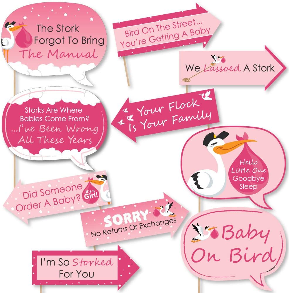 Funny Girl Special Delivery - Pink It's A Girl Stork Baby Shower Photo Booth Props Kit - 10 Piece