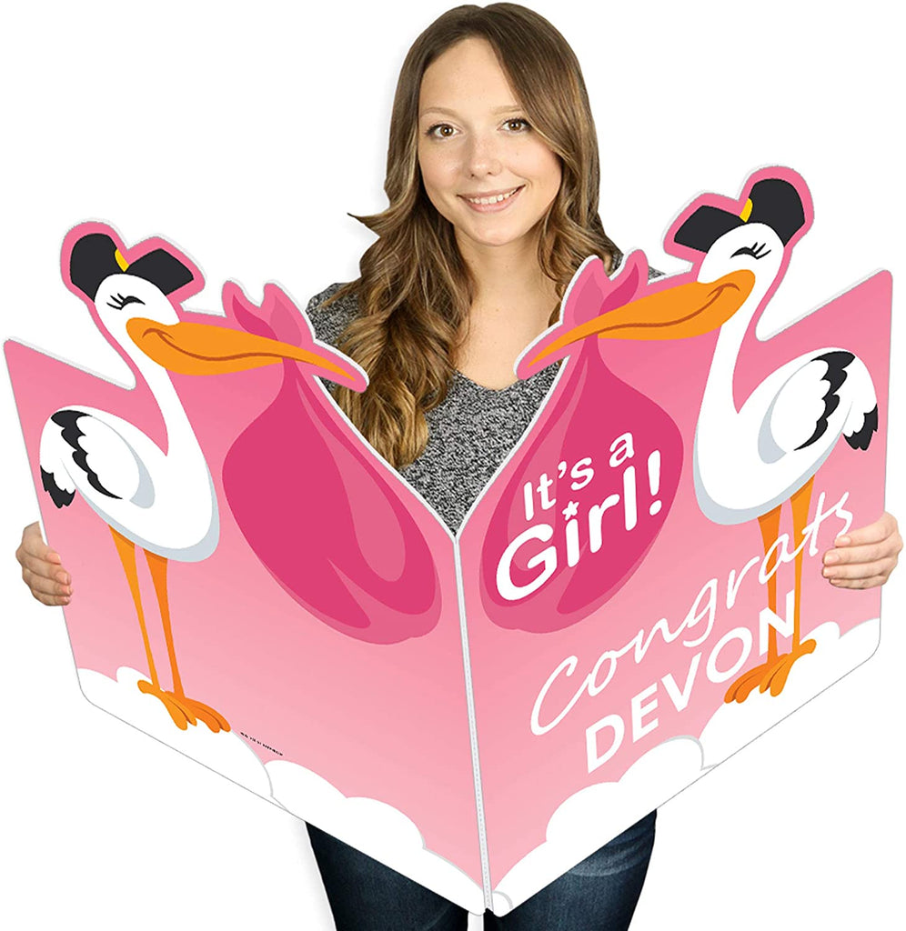Girl Special Delivery - Custom It’s A Girl Stork Congratulations Giant Greeting Card - Personalized Big Shaped Jumborific Card - 16.5 x 22 inches