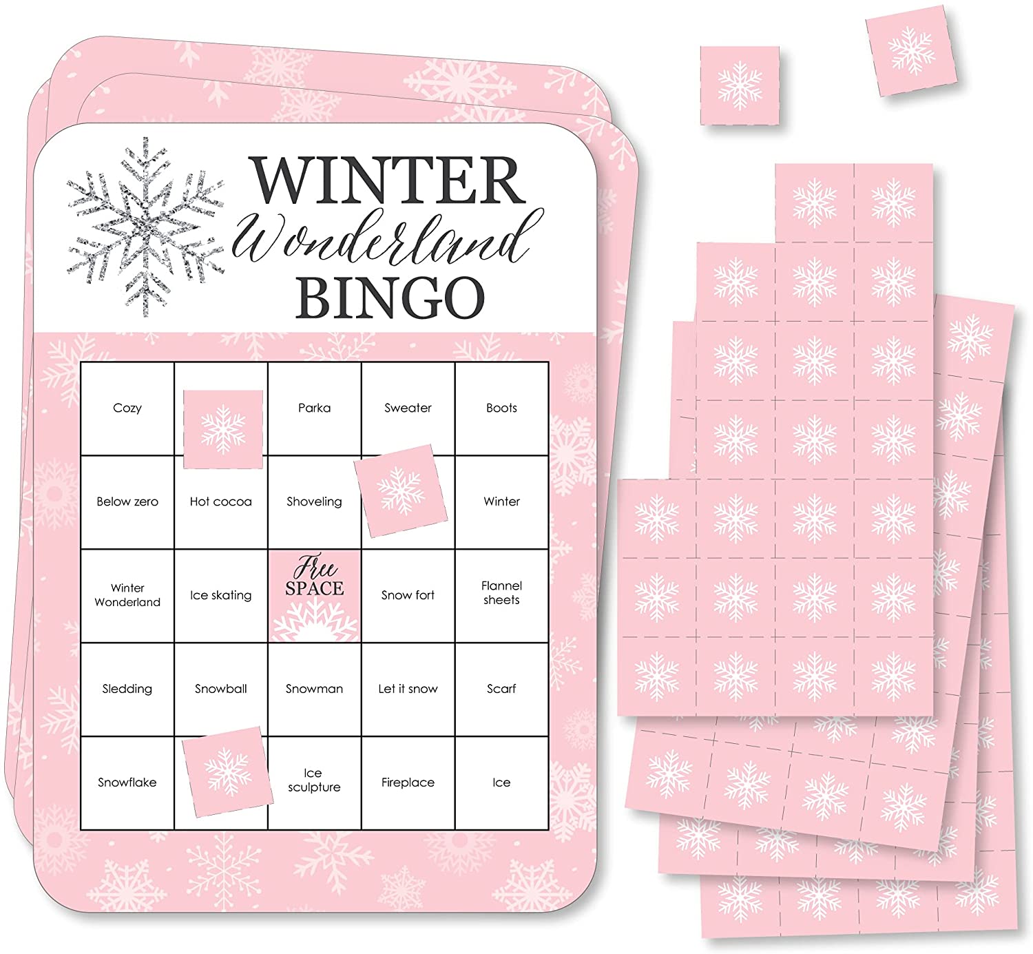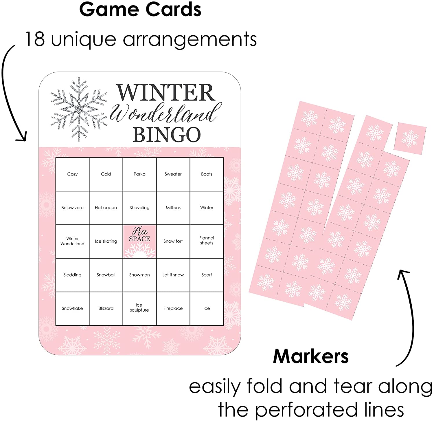 Pink Winter Wonderland - Bingo Cards and Markers - Holiday Snowflake Birthday Party and Baby Shower Bingo Game - Set of 18 is backordered and will ship as soon as it is back in stock.