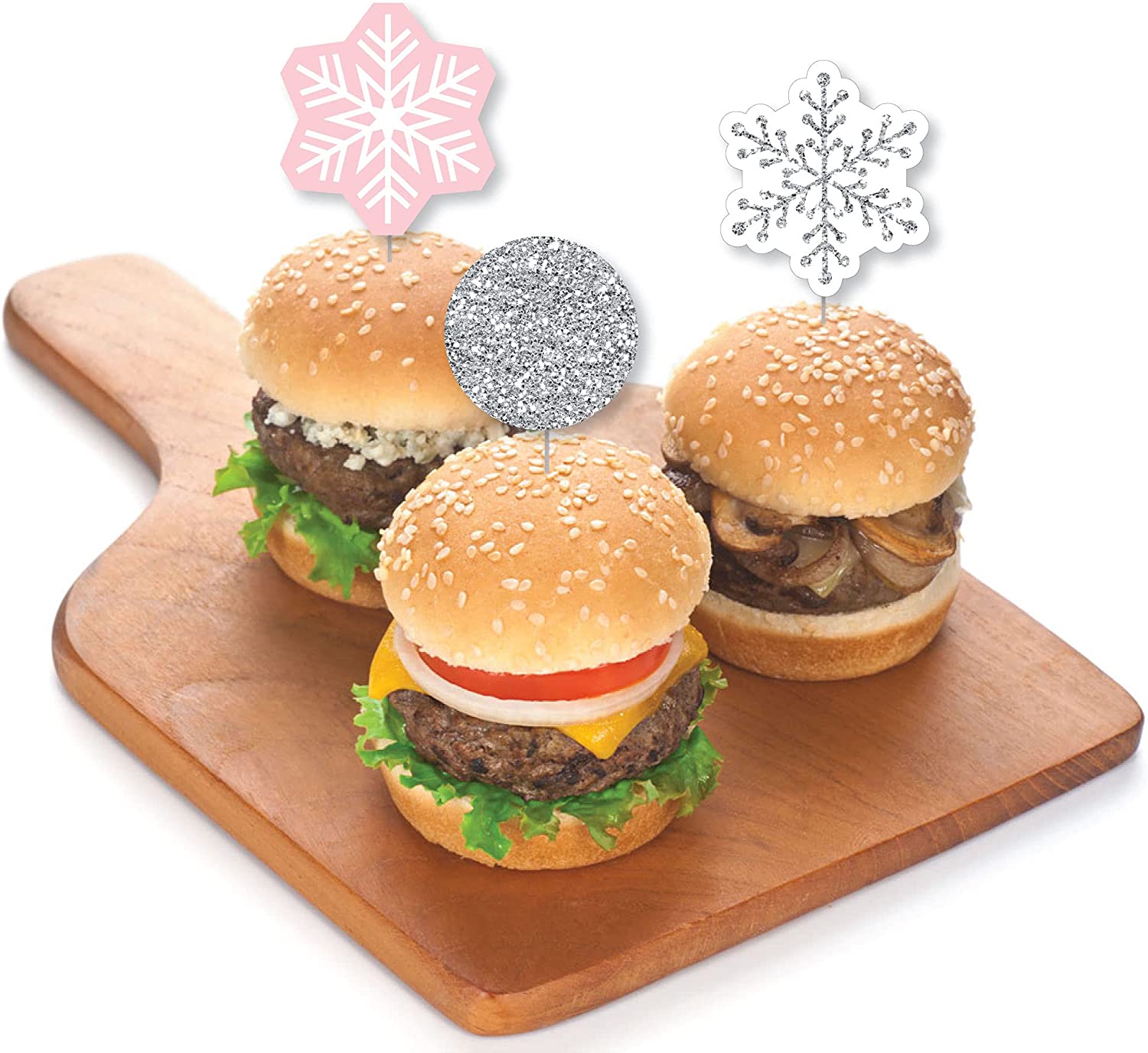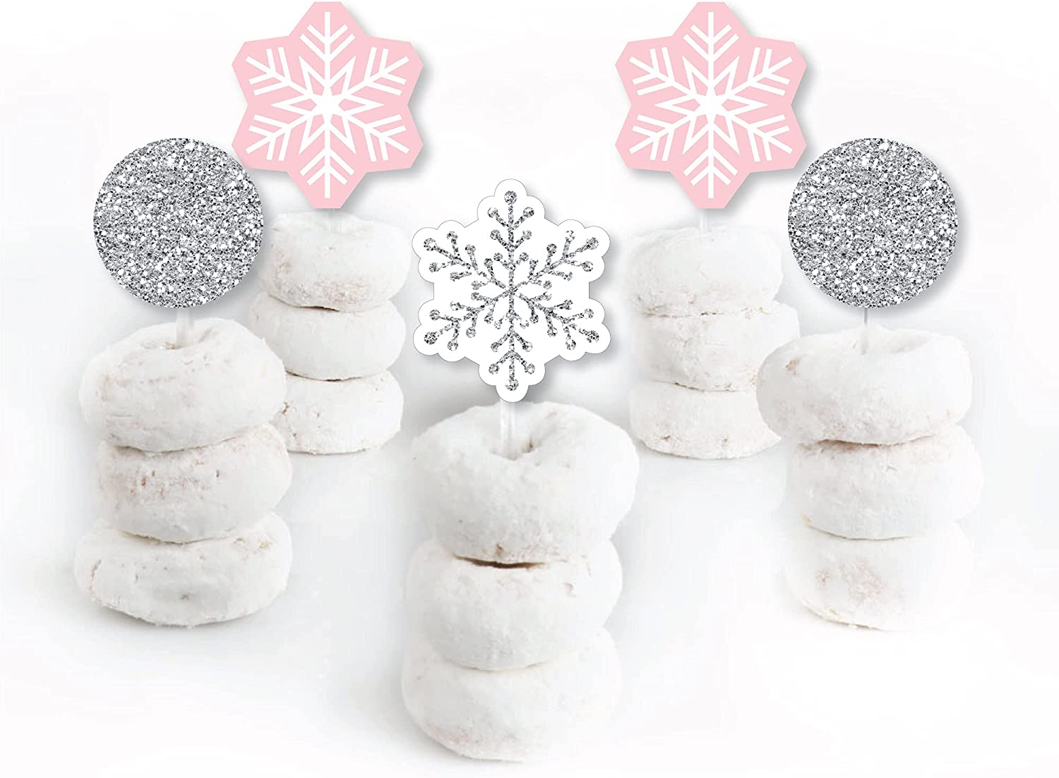 Pink Winter Wonderland- Dessert Cupcake Toppers - Holiday Snowflake Birthday Party or Baby Shower Clear Treat Picks - Set of 24 is backordered and will ship as soon as it is back in stock.