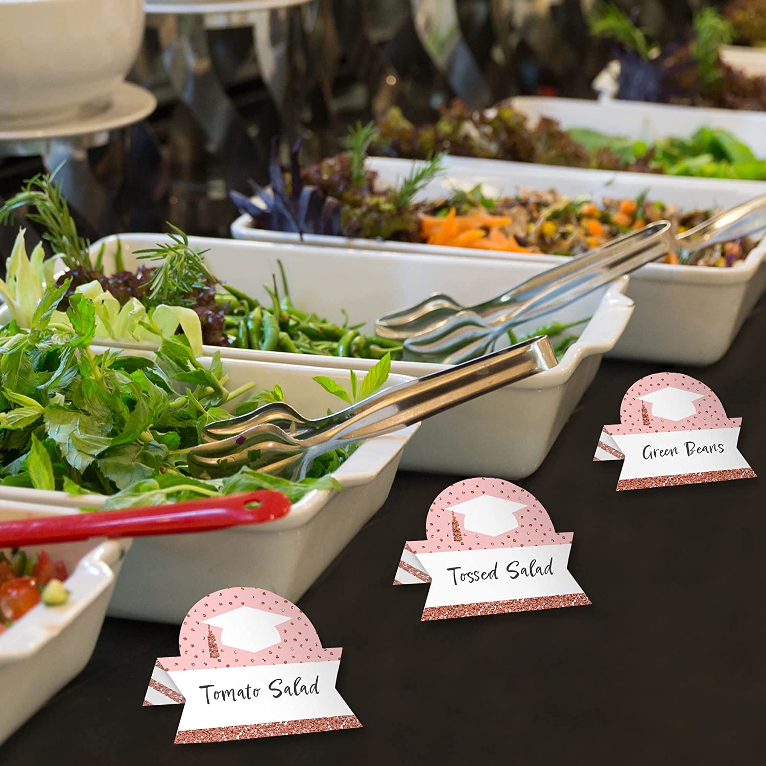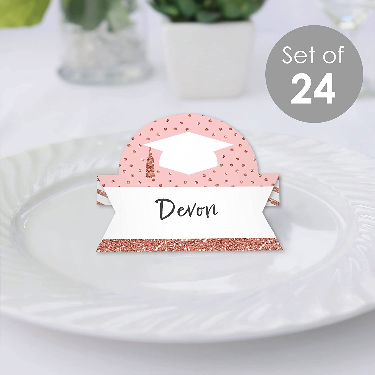 Rose Gold Grad - Graduation Party Tent Buffet Card - Table Setting Name Place Cards - Set of 24