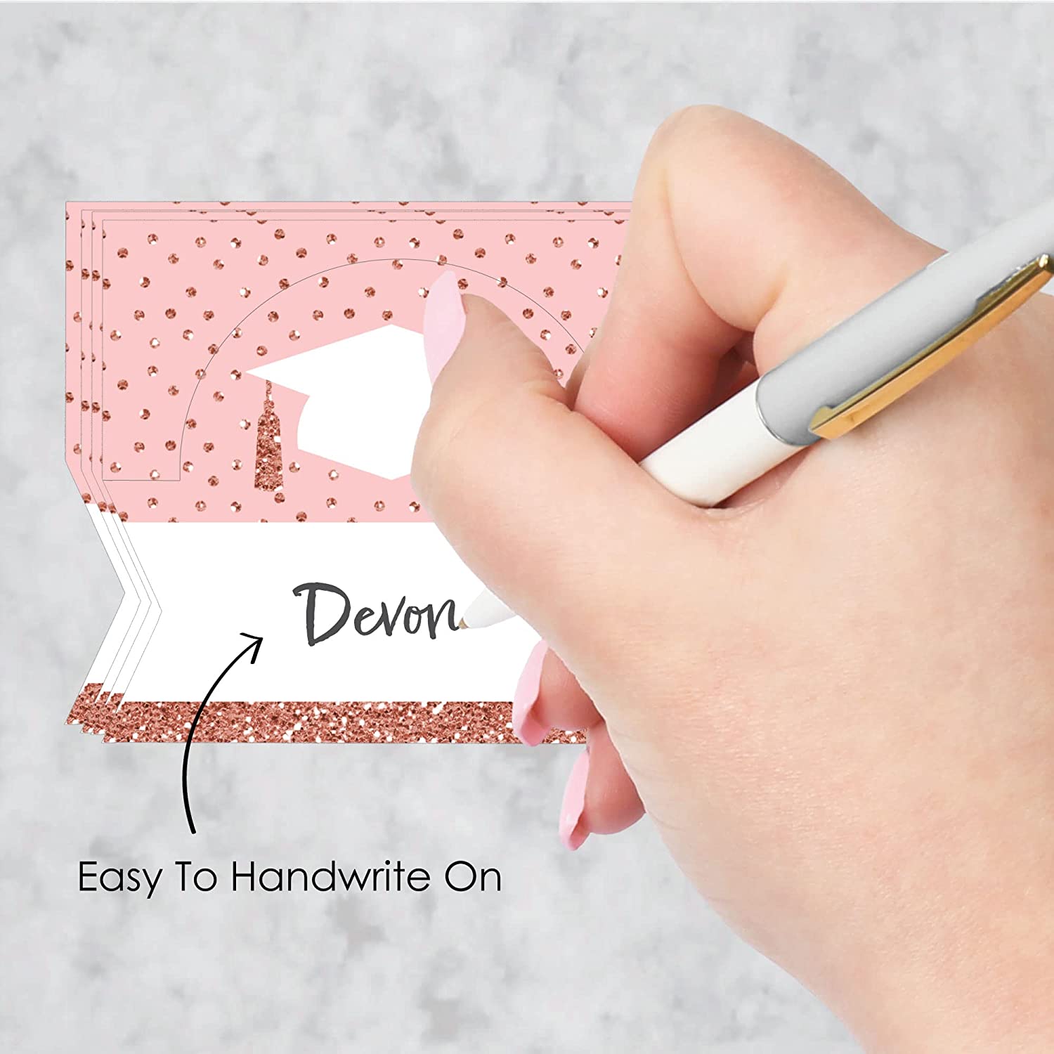 • VERSATILE IN USE: Whether it’s a small party or large gathering, the Rose Gold Grad Place Cards can be used in a variety of ways. Handwrite words in the blank space and then set them on the buffet table, as part of a place setting, or consider using them for an icebreaker activity.