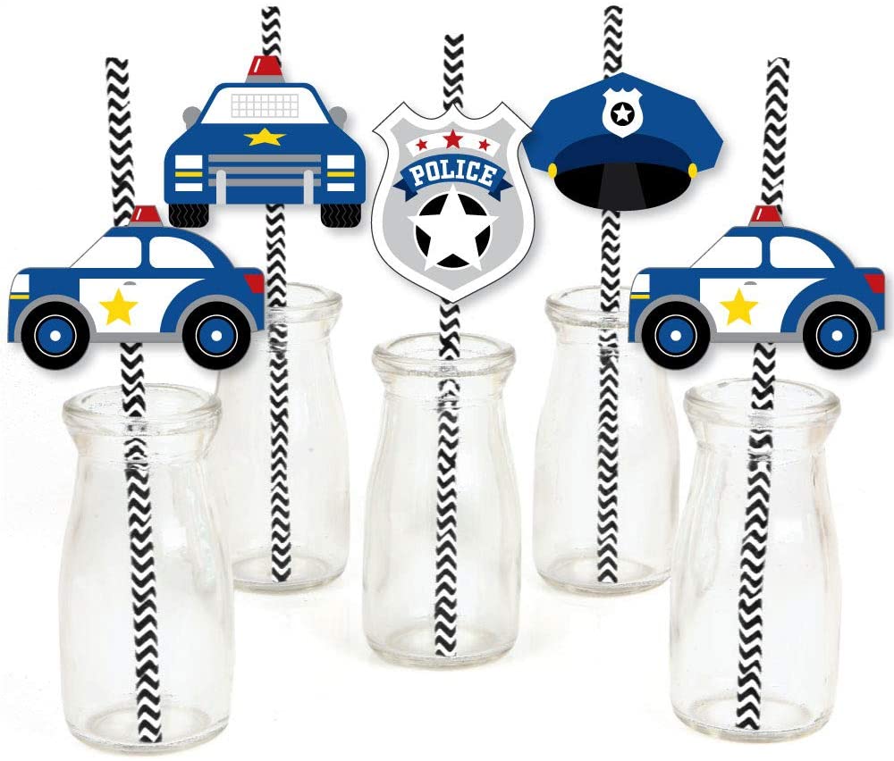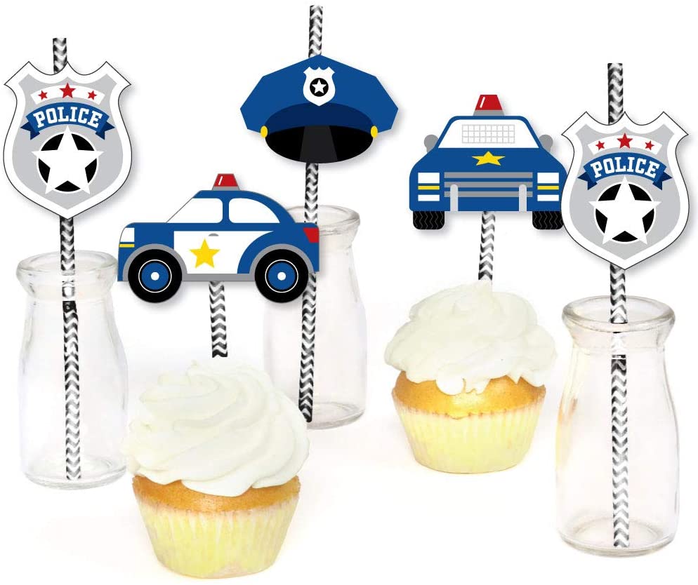 • PREMIUM PARTY SUPPLIES: Calling All Units - Police paper cut out straw decorations are professionally printed on heavy-duty card stock paper with a photo-like shine. They are individually inspected and carefully packaged by hand, along with coordinating paper straws. Cop Straw Decor will require some easy assembly. Simply adhere the shaped cut outs to the straws using the included clear stickers. Get creative with your DIY baby shower or birthday party decoration ideas!