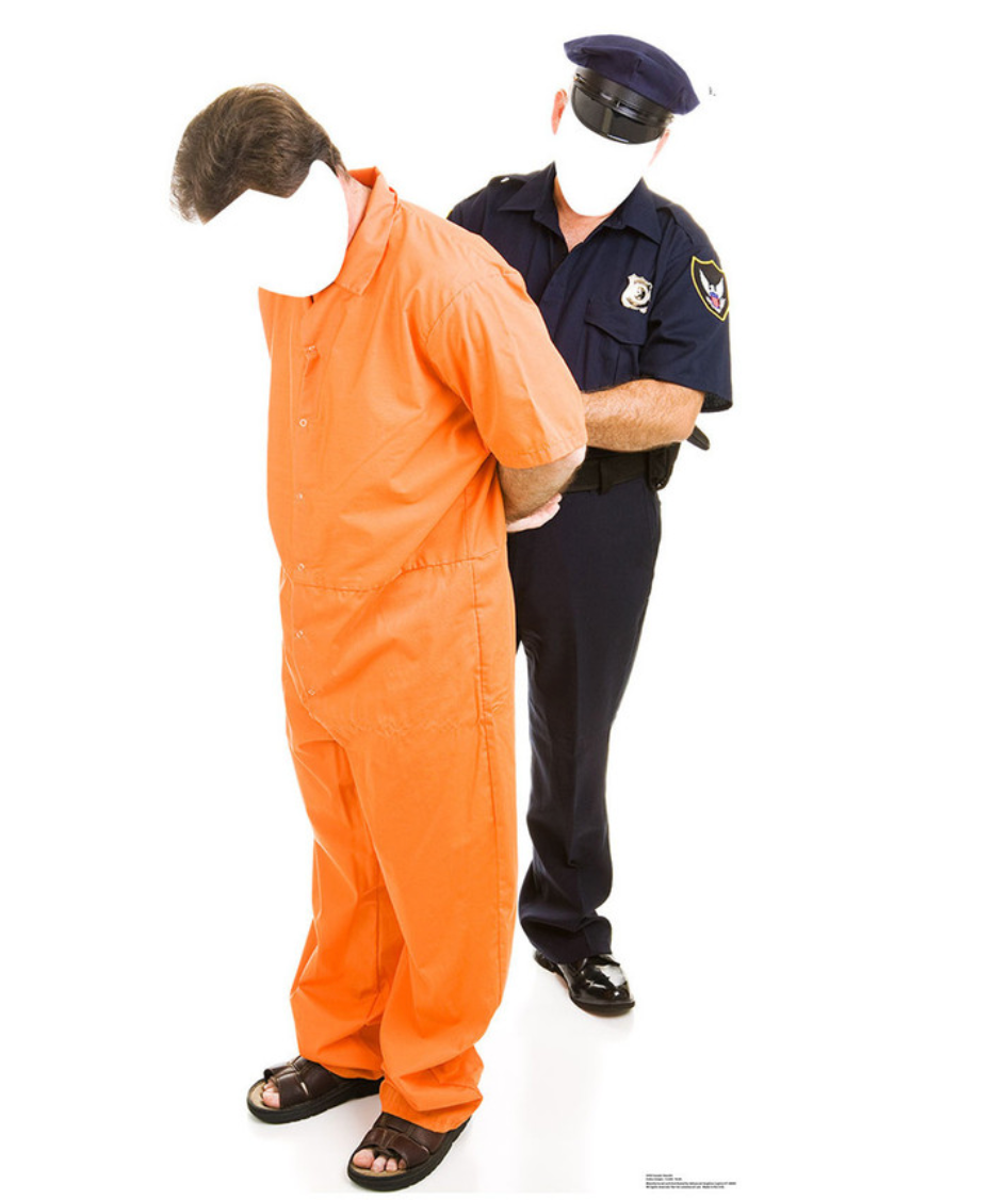 Inmate and Police Officer Standin 67 x 33 (height x width) inches is backordered and will ship as soon as it is back in stock.