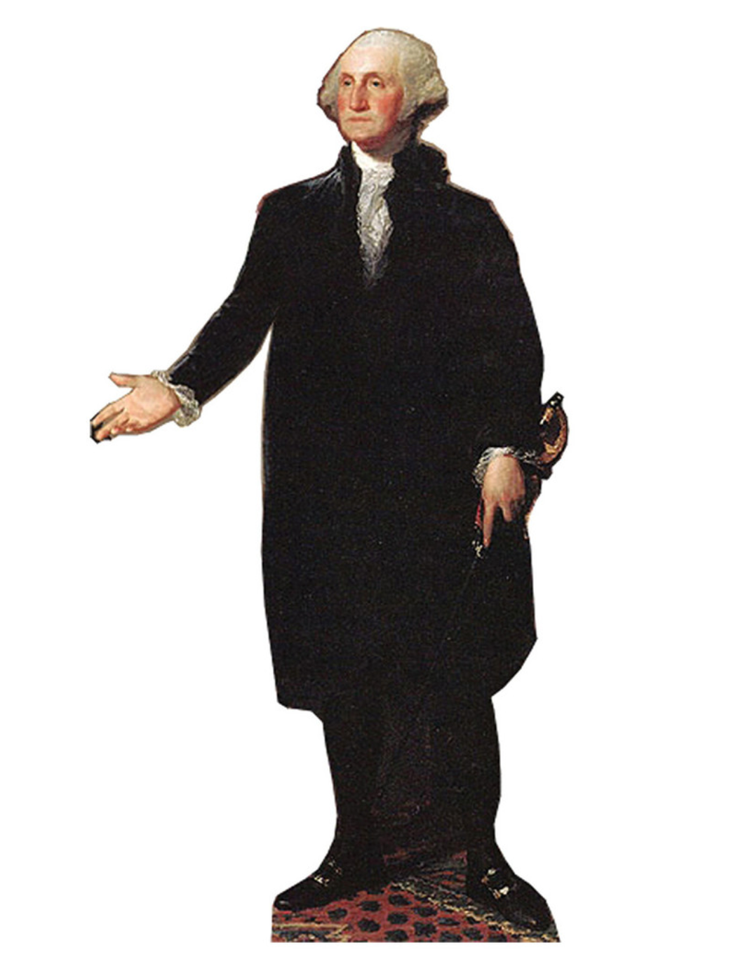 George Washington Standee 72 x 38 (height x width) inches is backordered and will ship as soon as it is back in stock.