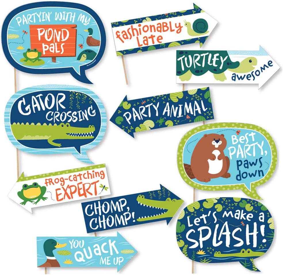 Funny Pond Pals - Frog, Alligator, Turtle, Beaver and Duck Birthday Party or Baby Shower Photo Booth Props Kit - 10 Piece is backordered and will ship as soon as it is back in stock.