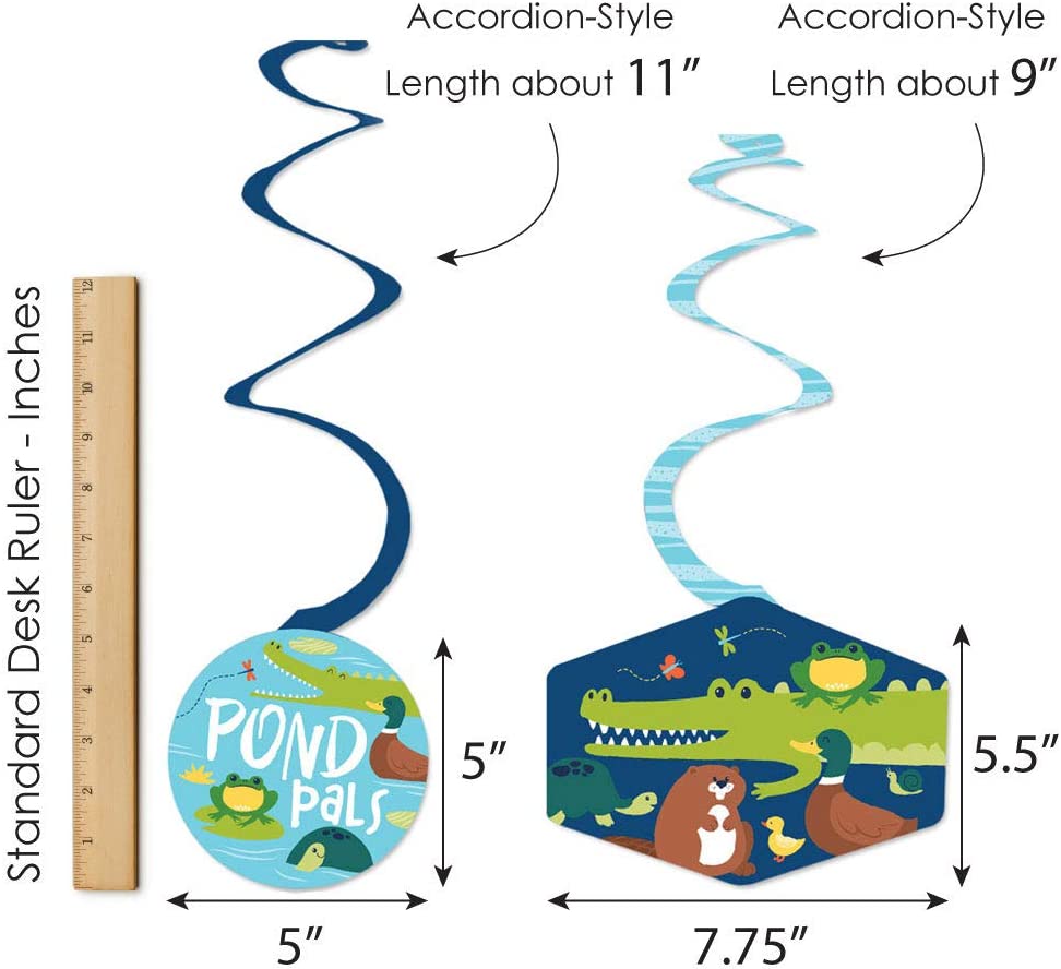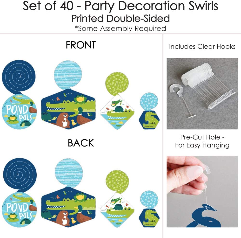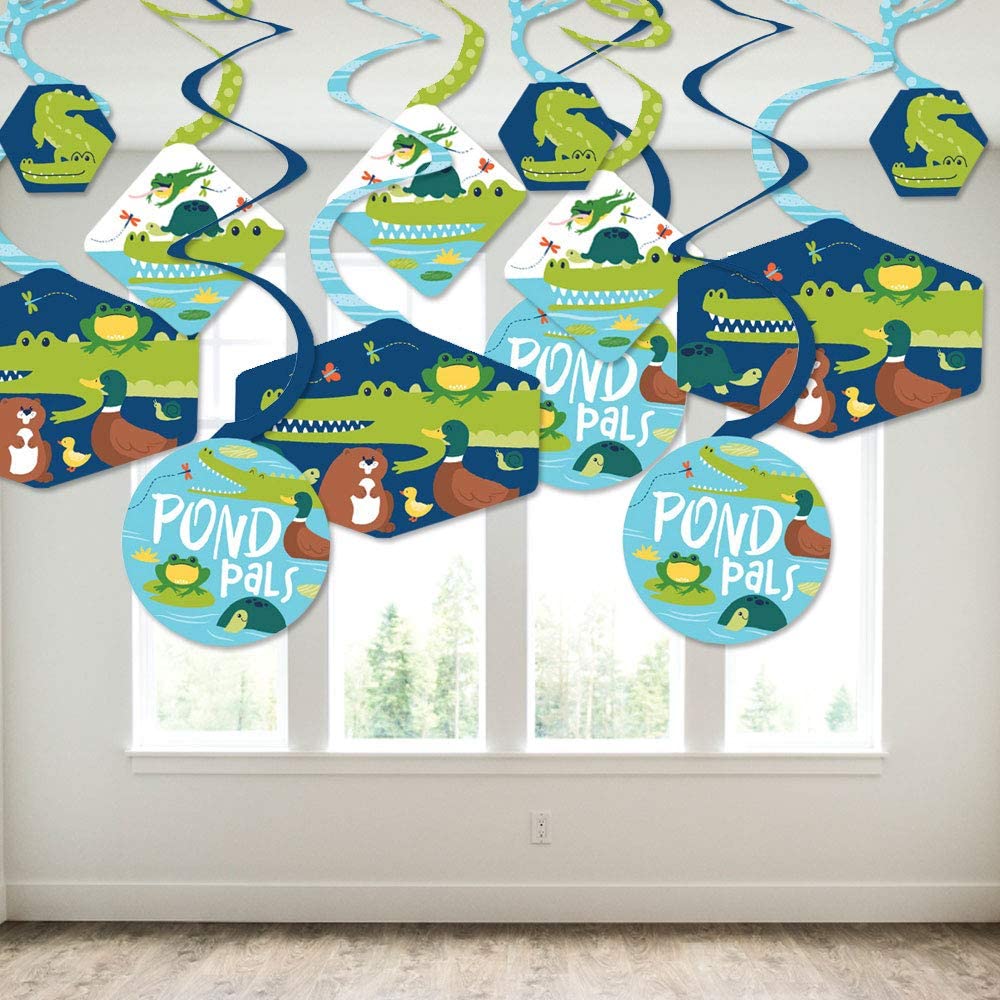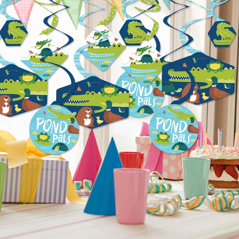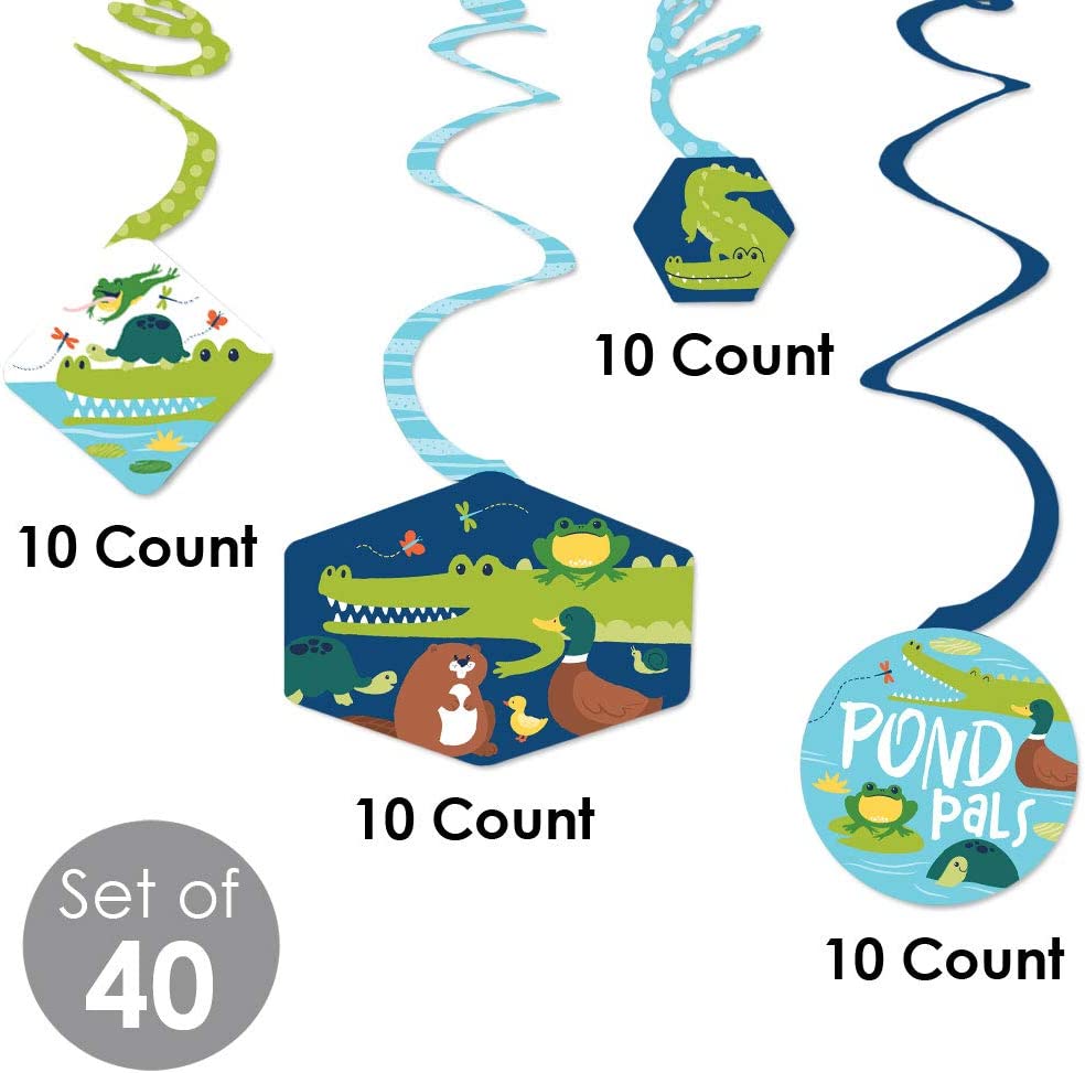Pond Pals - Frog, Alligator, Turtle, Beaver and Duck Birthday Party or Baby Shower Hanging Decor - Party Decoration Swirls - Set of 40 is backordered and will ship as soon as it is back in stock.