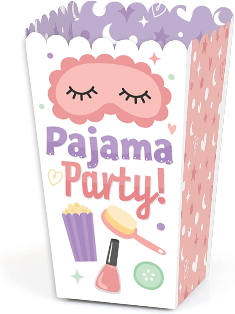 Pajama Slumber Party - Girls Sleepover Birthday Party Favor Popcorn Treat Boxes - Set of 12
