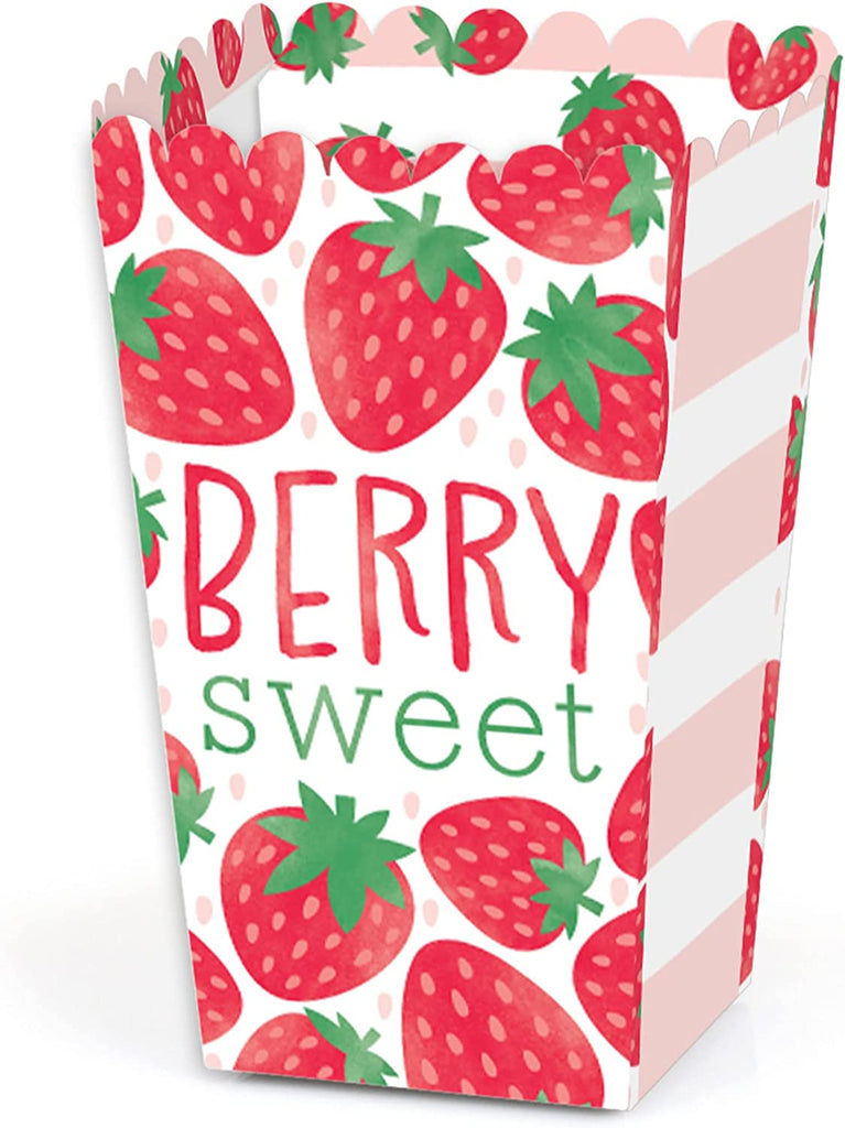 Sweet Strawberry - Fruit Themed Birthday Party or Baby Shower Favor Popcorn Treat Boxes - Set of 12