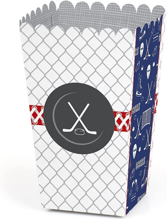 Shoots and Scores - Hockey - Baby Shower or Birthday Party Favor Popcorn Treat Boxes - Set of 12