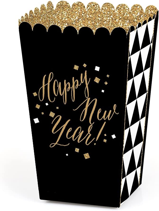New Year's Eve - Gold New Years Eve Party Favor Popcorn Treat Boxes - Set of 12