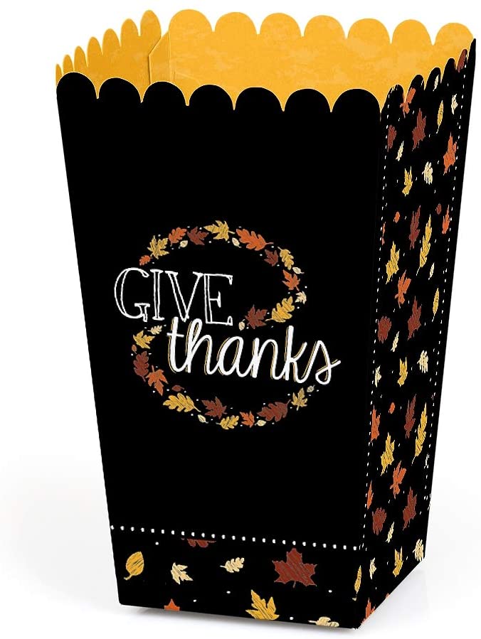 Give Thanks - Thanksgiving - Party Favor Popcorn Treat Boxes - Set of 12