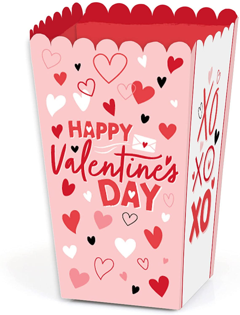 Happy Valentine’s Day - Valentine Hearts Party Favor Popcorn Treat Boxes - Set of 12