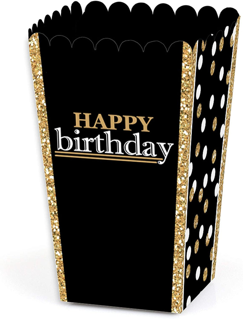 Adult Happy Birthday - Gold - Birthday Party Favor Popcorn Treat Boxes - Set of 12