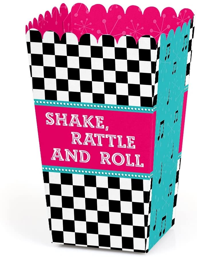 50's Sock Hop - 1950s Rock N Roll Party Favor Popcorn Treat Boxes - Set of 12 is backordered and will ship as soon as it is back in stock.