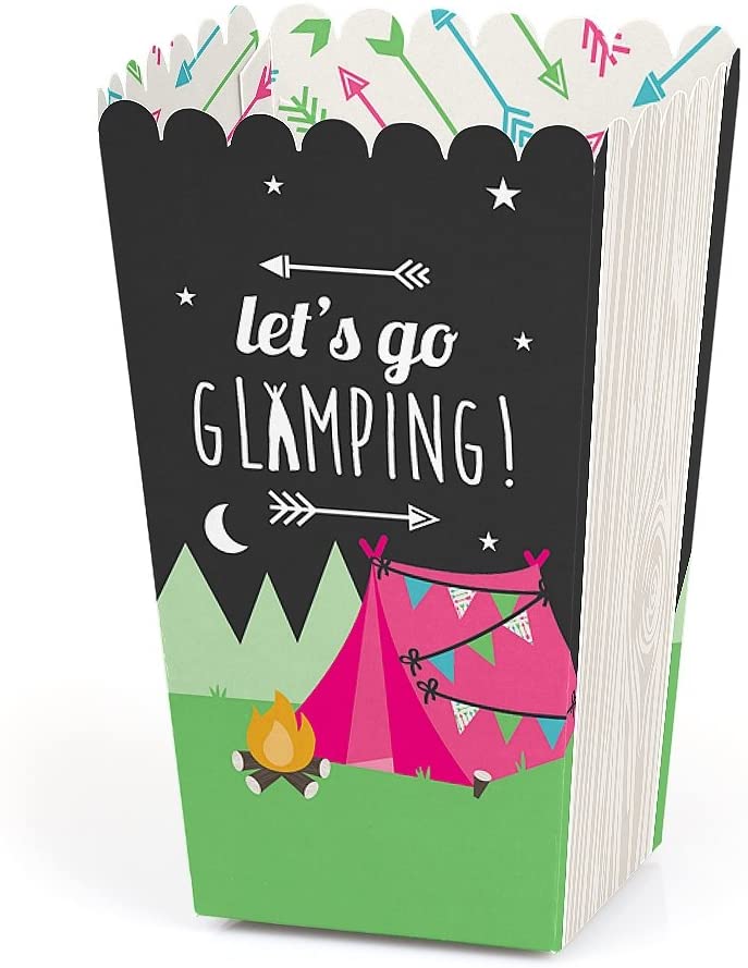 Let's Go Glamping - Camp Glamp Party or Birthday Party Favor Popcorn Treat Boxes - Set of 12 is backordered and will ship as soon as it is back in stock.