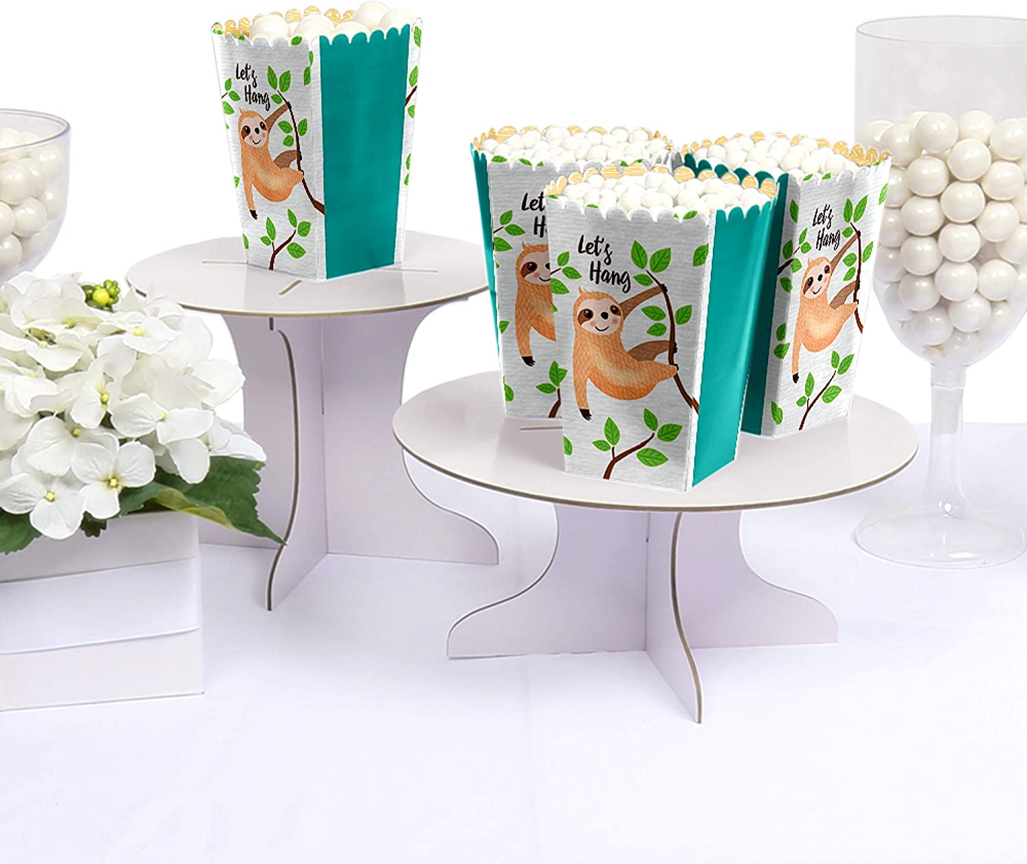 • POPCORN BOX PARTY SUPPLIES: Let’s Hang - Sloth popcorn boxes will hold a variety of party food. Fill them with sweet treats or salty snacks. Popcorn, caramel corn, candies and other goodies will look amazing on your candy buffet with these sloth favor boxes.
