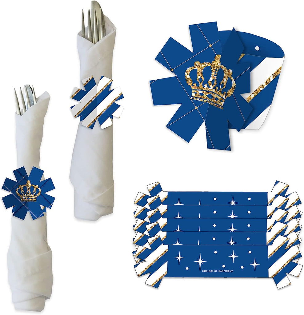 Royal Prince Charming - Baby Shower or Birthday Party Paper Napkin Holder - Napkin Rings - Set of 24