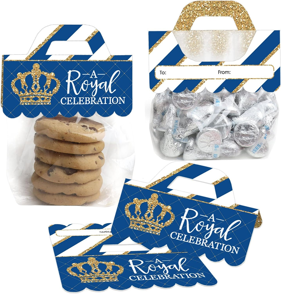 Royal Prince Charming - DIY Baby Shower or Birthday Party Clear Goodie Favor Bag Labels - Candy Bags with Toppers - Set of 24