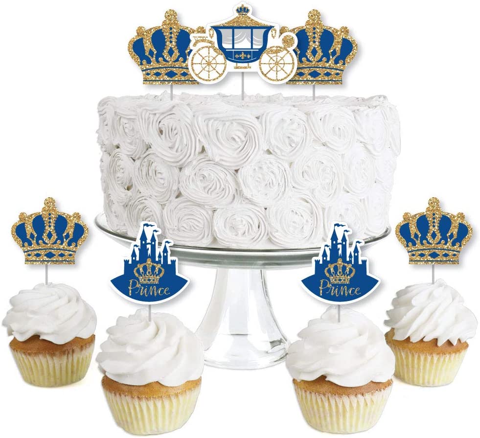 Royal Prince Charming - Dessert Cupcake Toppers - Baby Shower or Birthday Party Clear Treat Picks - Set of 24