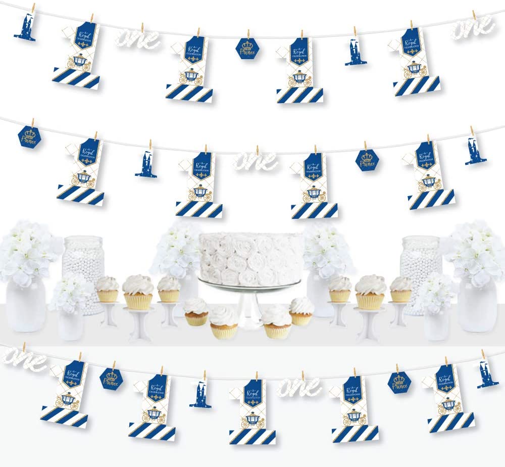 1st Birthday Royal Prince Charming - First Birthday Party DIY Decorations - Clothespin Garland Banner - 44 Pieces