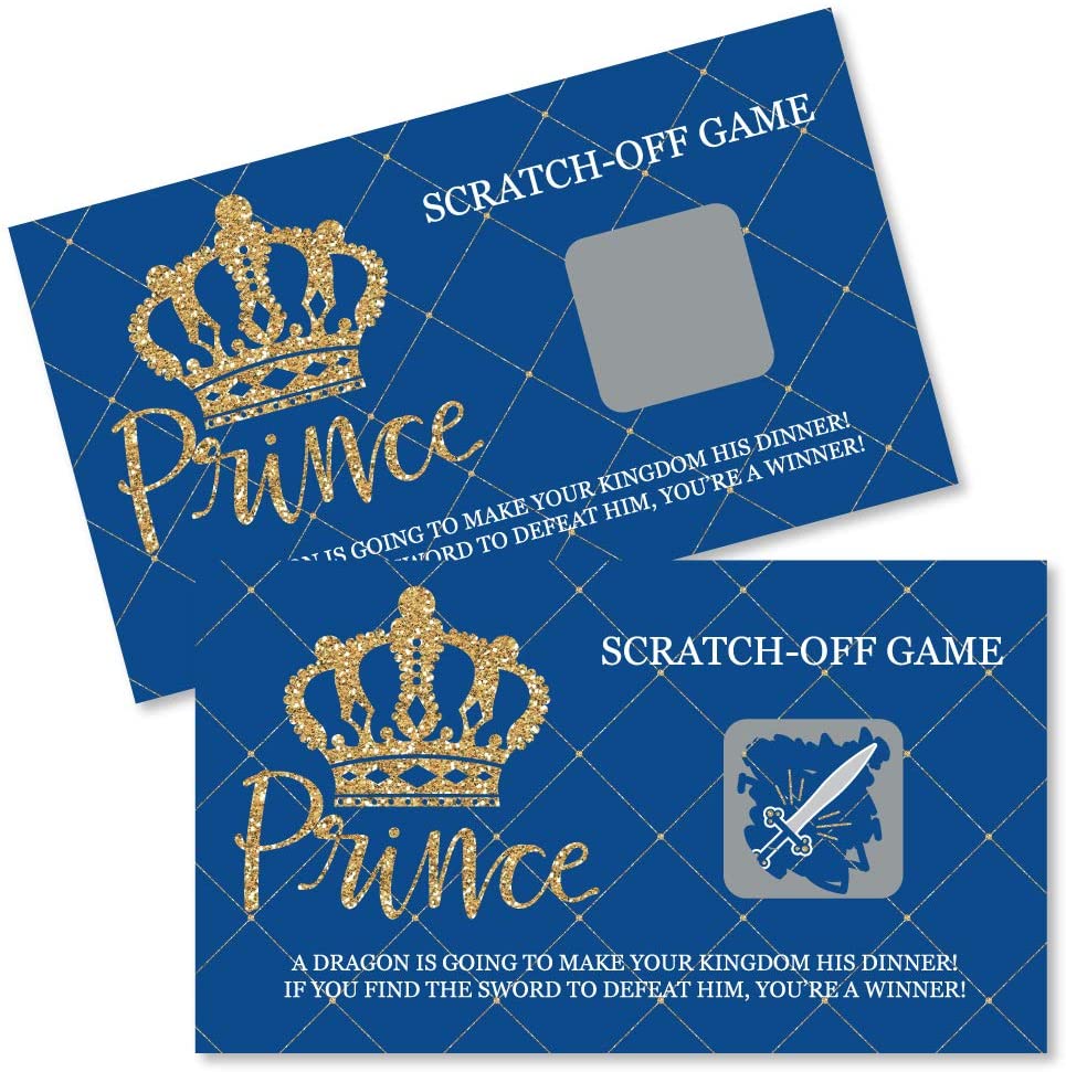 Royal Prince Charming - Baby Shower or Birthday Party Game Scratch Off Cards - 22 Count