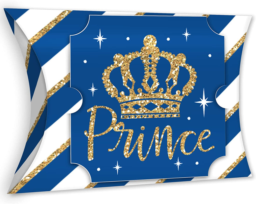 Royal Prince Charming - Favor Gift Boxes - Baby Shower or Birthday Party Large Pillow Boxes - Set of 12
