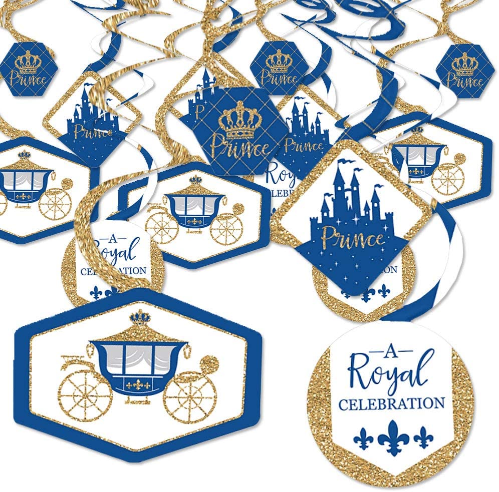 Royal Prince Charming - Baby Shower or Birthday Party Hanging Decor - Party Decoration Swirls - Set of 40