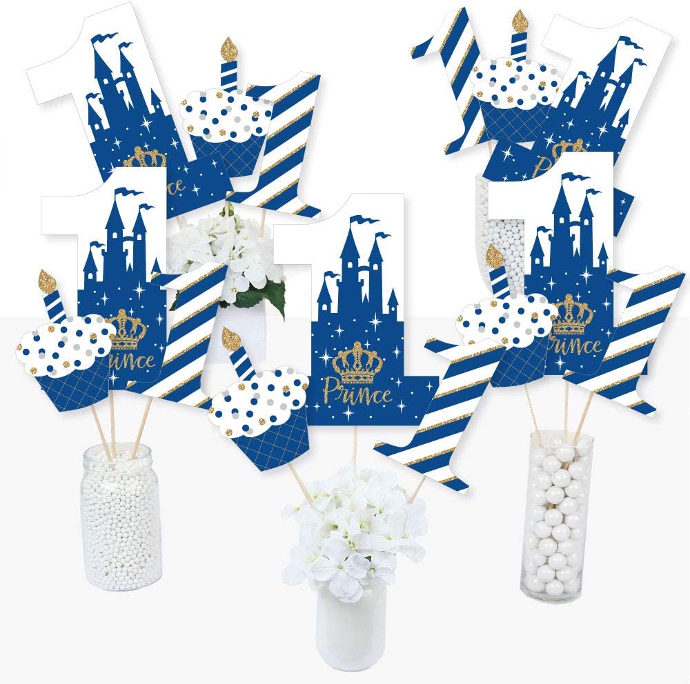 1st Birthday Royal Prince Charming - First Birthday Party Centerpiece Sticks - Table Toppers - Set of 15