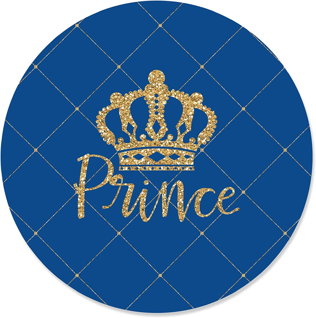 Royal Prince Charming - Baby Shower or Birthday Party Circle Sticker Labels - 24 Count