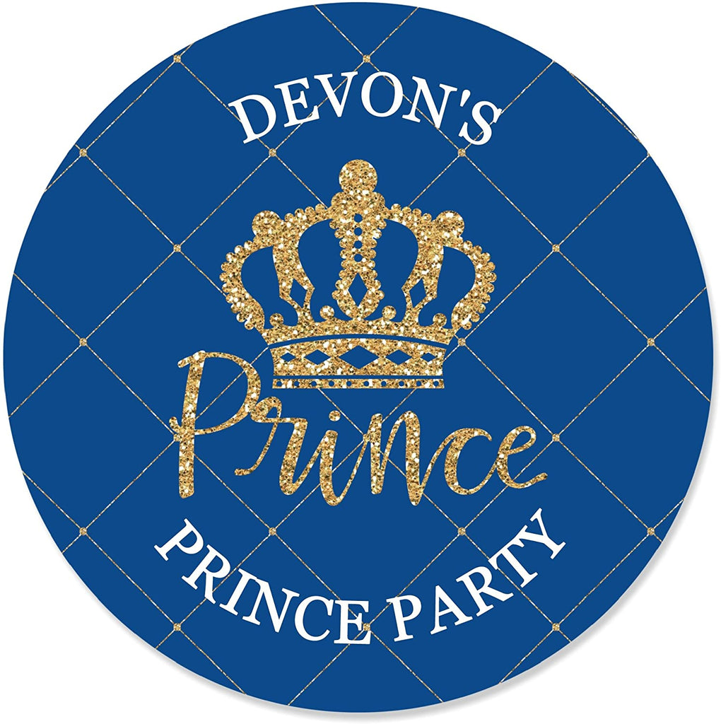 Royal Prince Charming - Custom Baby Shower or Birthday Party Favor Circle Sticker Labels - Custom Text - 24 Count