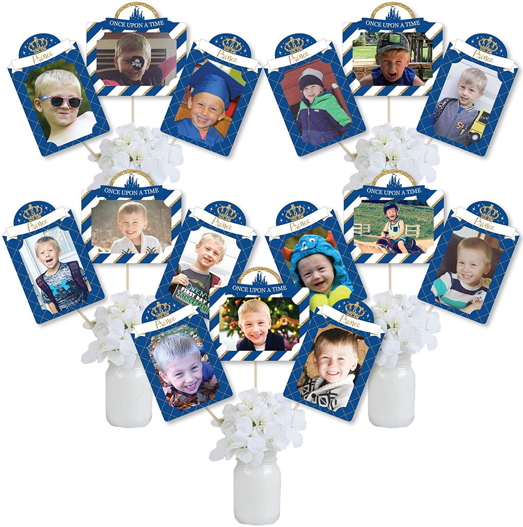 Royal Prince Charming - Baby Shower or Birthday Party Picture Centerpiece Sticks - Photo Table Toppers - 15 Pieces