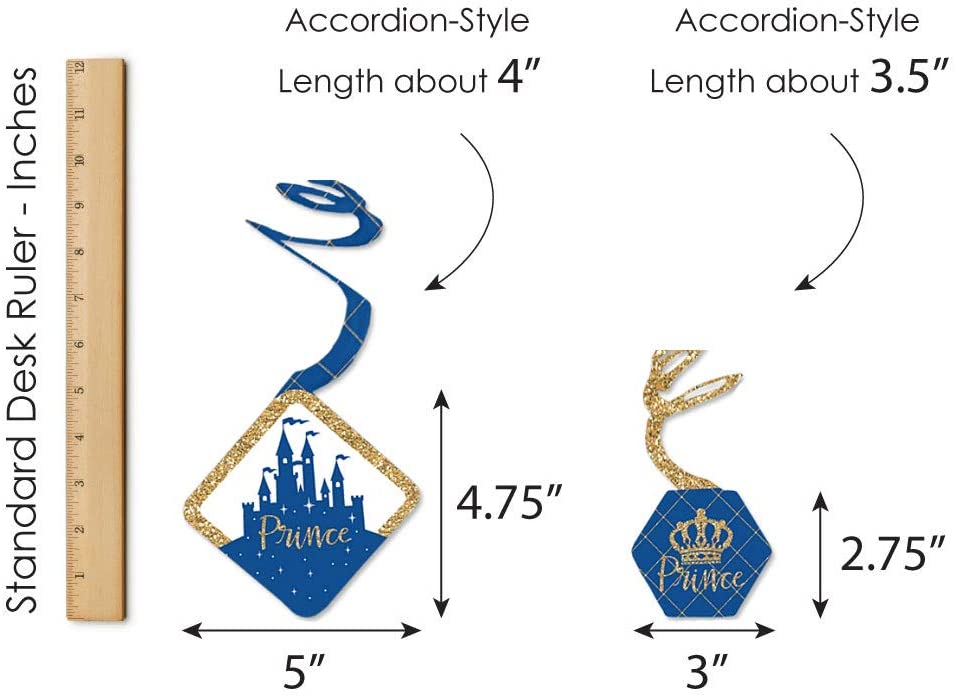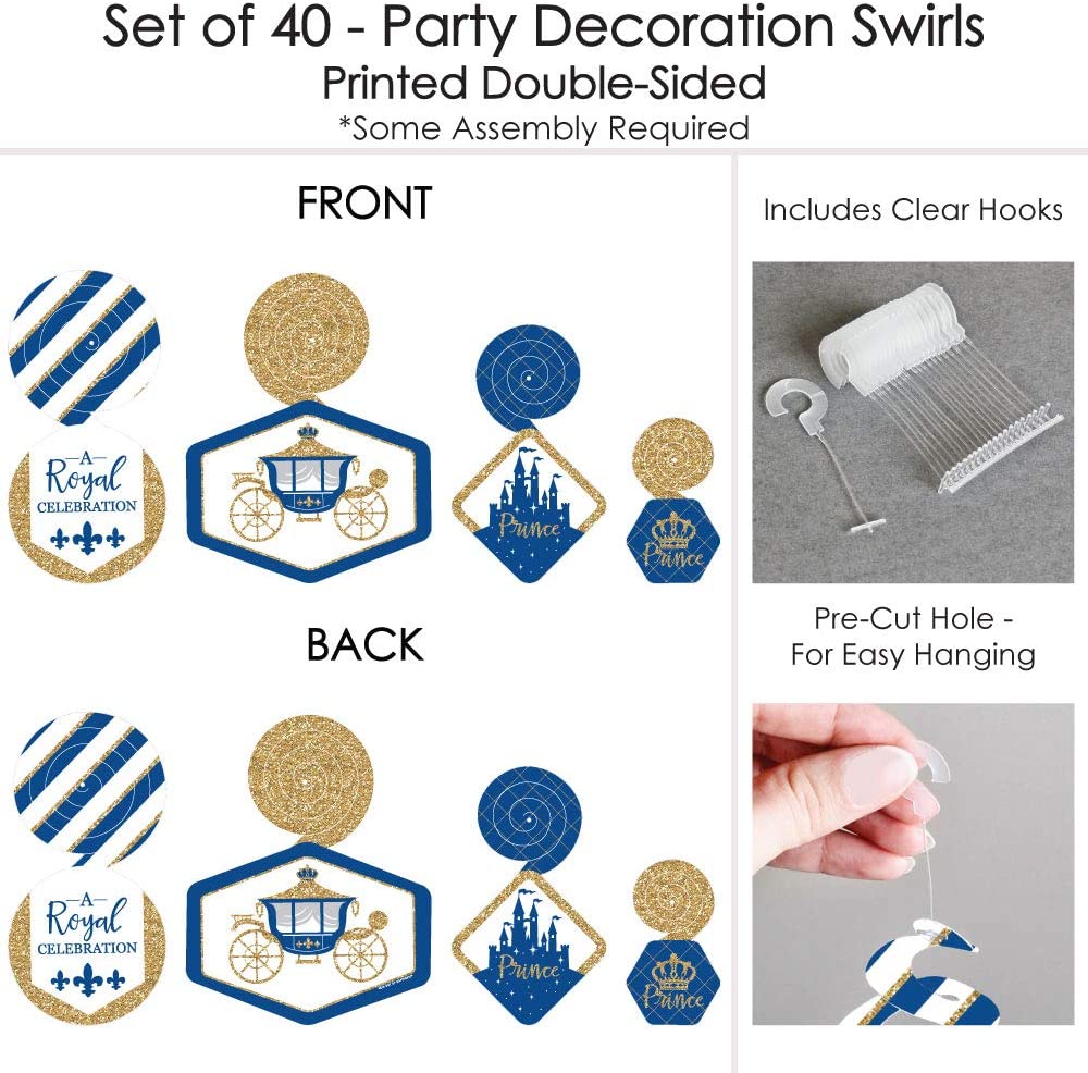 • HIGH-QUALITY PARTY SUPPLY: Royal Prince Charming Party Decoration Swirls are professionally printed and double-sided on heavy-duty cardstock paper. They are individually cut, inspected, and carefully packaged. Each swirl will use one clear hook.