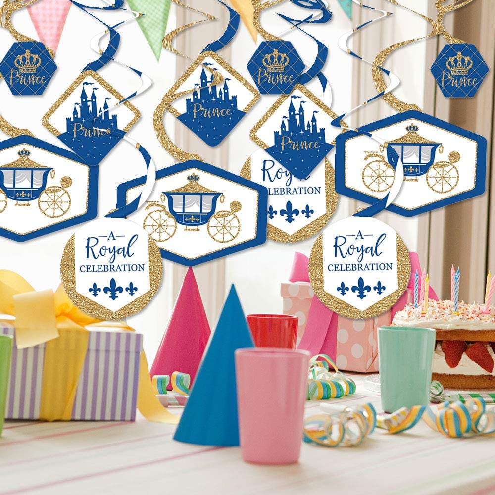 Royal Prince Charming - Baby Shower or Birthday Party Hanging Decor - Party Decoration Swirls - Set of 40