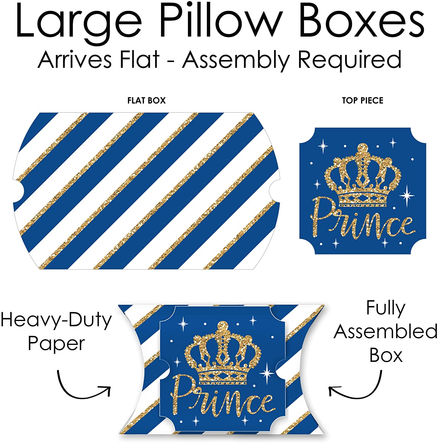 Royal Prince Charming - Favor Gift Boxes - Baby Shower or Birthday Party Large Pillow Boxes - Set of 12 is backordered and will ship as soon as it is back in stock.