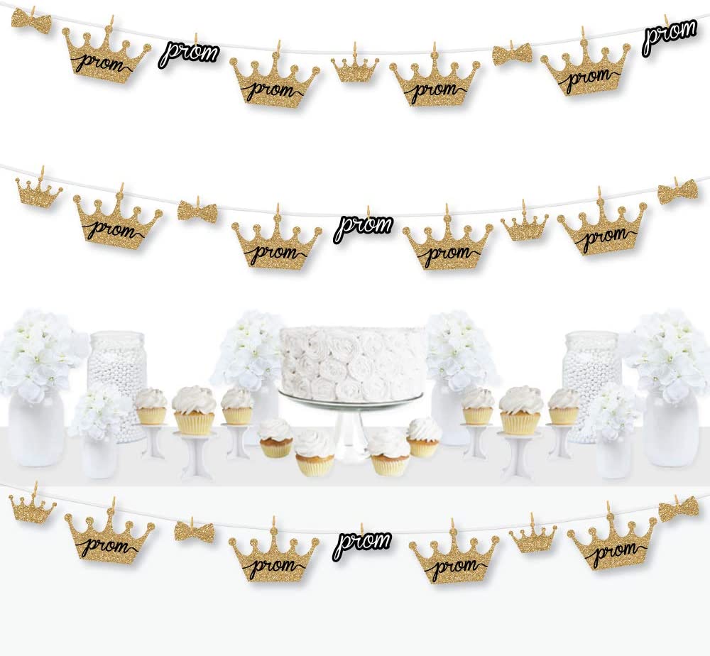 Prom - Prom Night Party Letter Banner Decoration - 36 Banner Cutouts and No-Mess Real Gold Glitter Prom Night Banner Letters