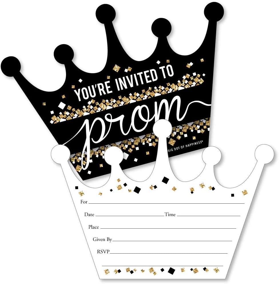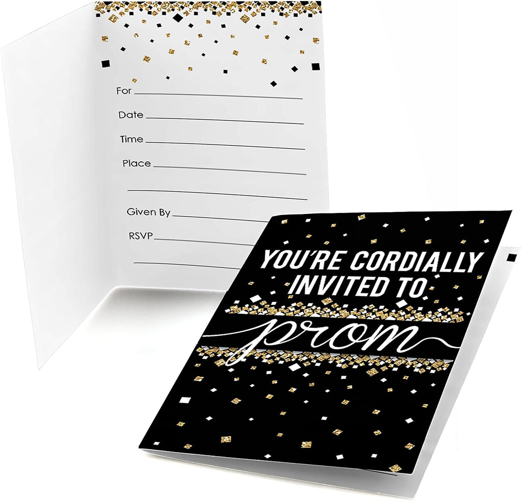 Prom - Shaped Fill-In Invitations - Prom Night Party Invitation Cards with Envelopes - Set of 12
