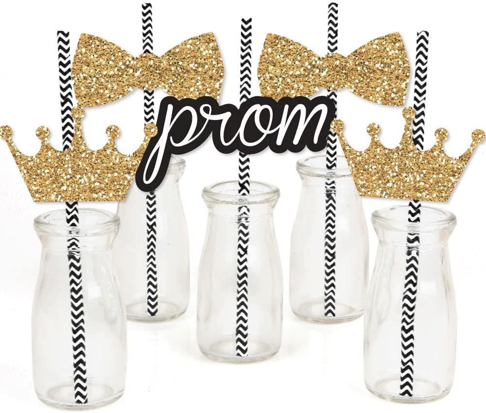 Prom - Paper Straw Decor - Prom Night Striped Decorative Straws - Set of 24